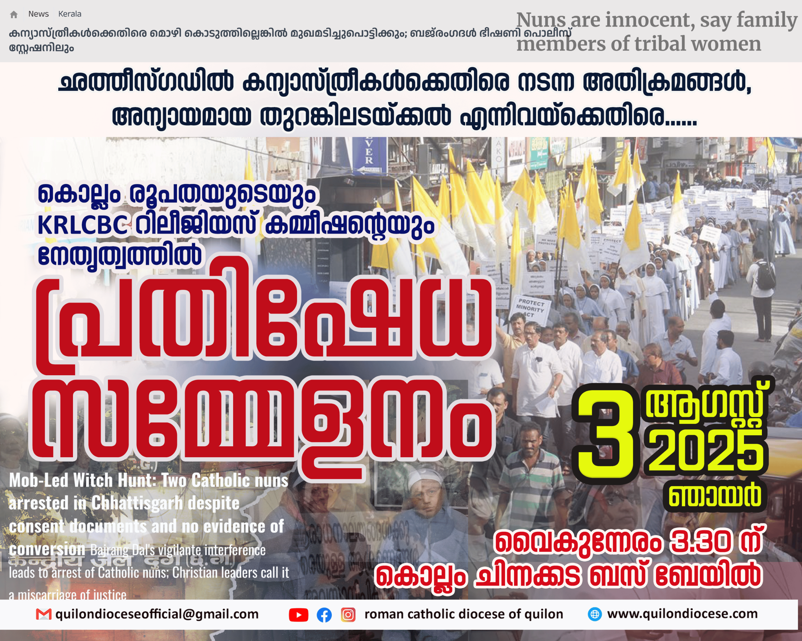The Diocese of Quilon, the first diocese in India and the cradle of Indian Christianity is proud to welcome you to this web portal. The vibrant catholic community of Quilon (Kollam) cherishes its unique history of being founded by St. Thomas the Apostle of Jesus, nurtured by the great apostle St. Francis Xavier and fostered by the saintly martyr Archbishop Jordanus Catalani de Severac.